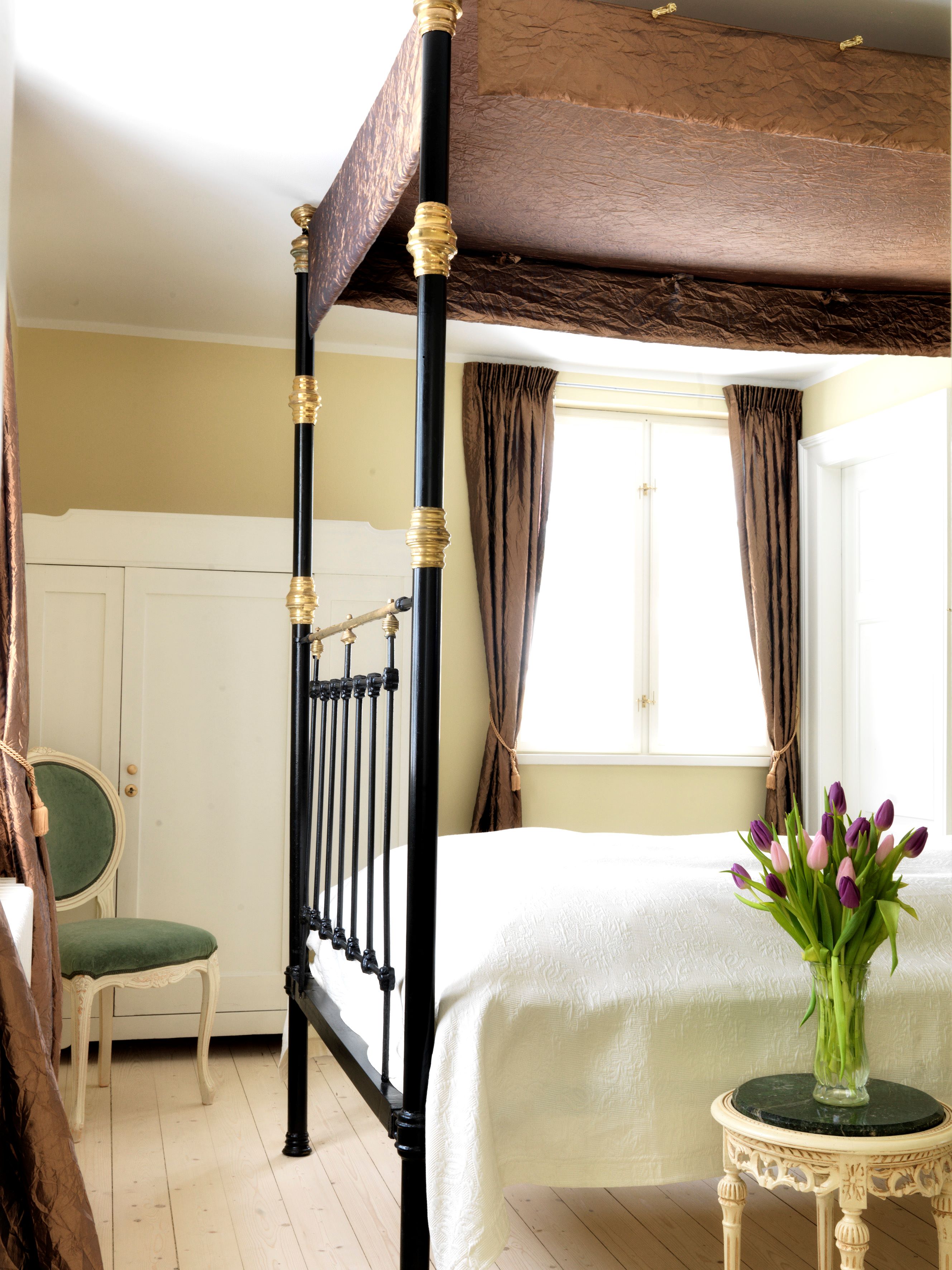Fordelt på herregårdens stueetage og førstesal finder du 18 eksklusivt og individuelt indrettede værelser, hvoraf 17 har eget badeværelse.